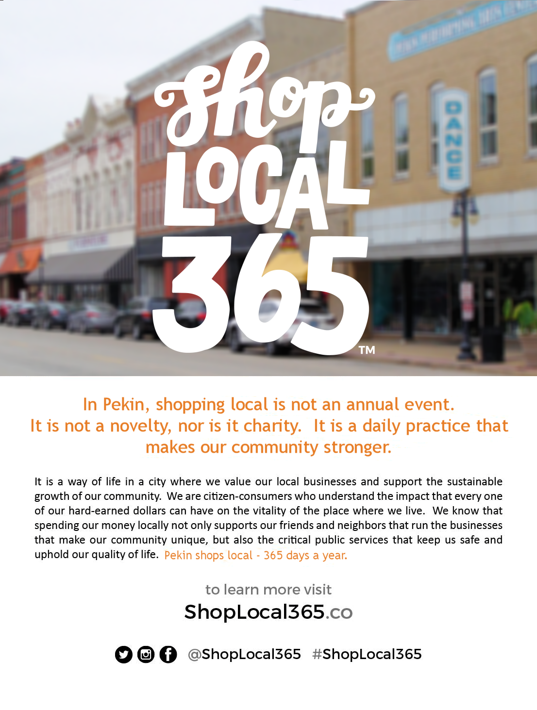 In Pekin, and Greater Peoria, shopping local is not an event. It is a daily practice to grow stronger communities.